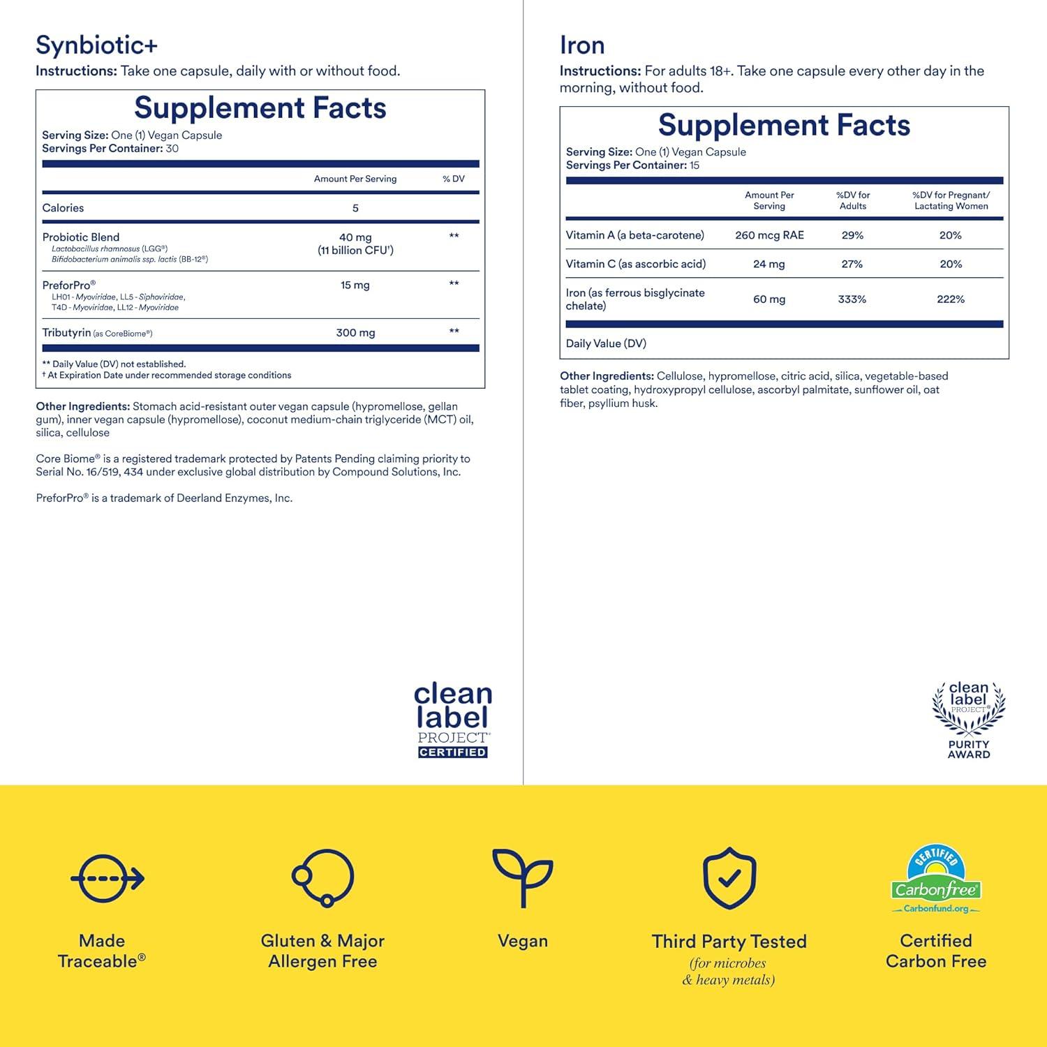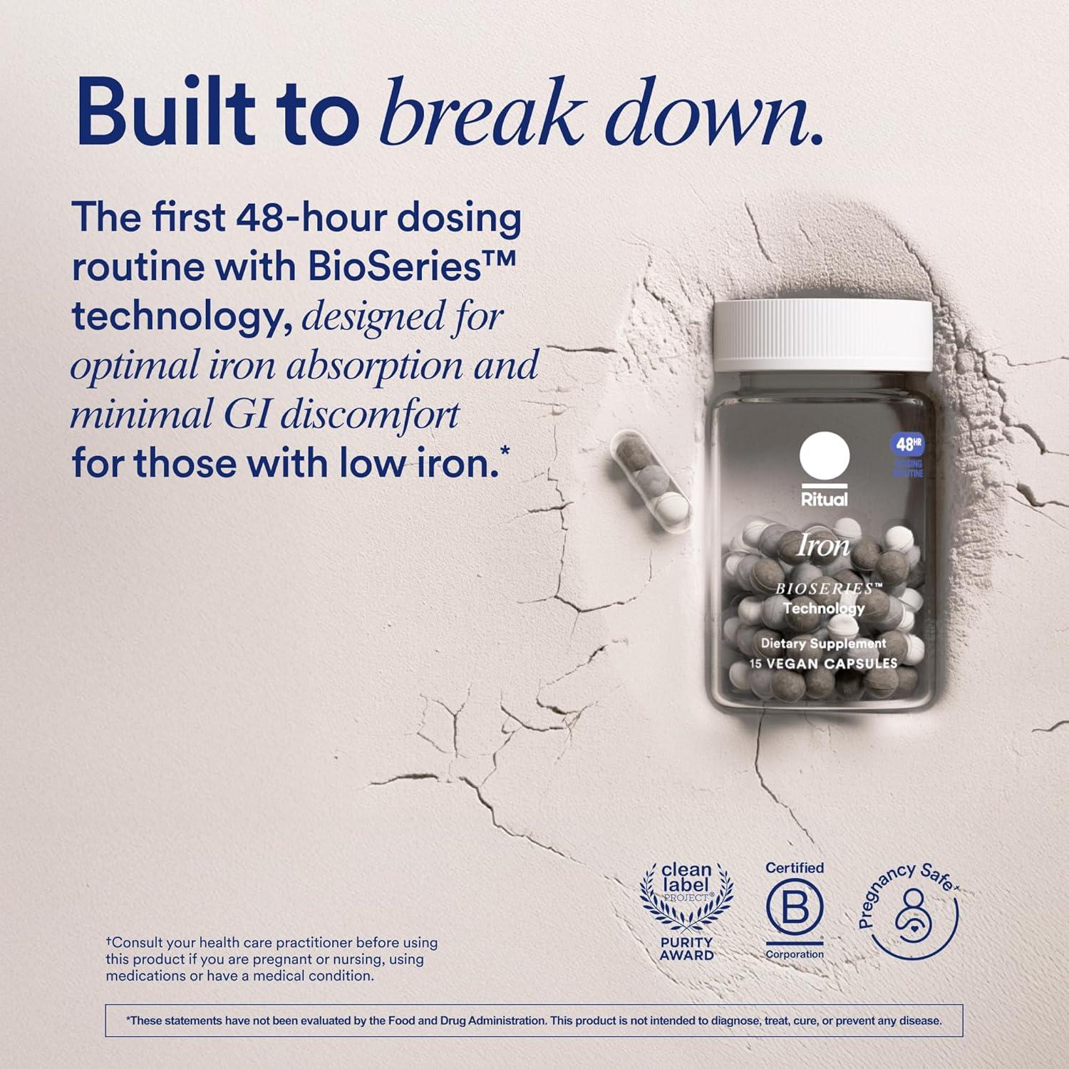 Ritual Iron Stomach Support Duo New 48-Hour Iron BioSeries™ and Synbiotic+ for Daily Gut Health Support, 30 Day Supply*