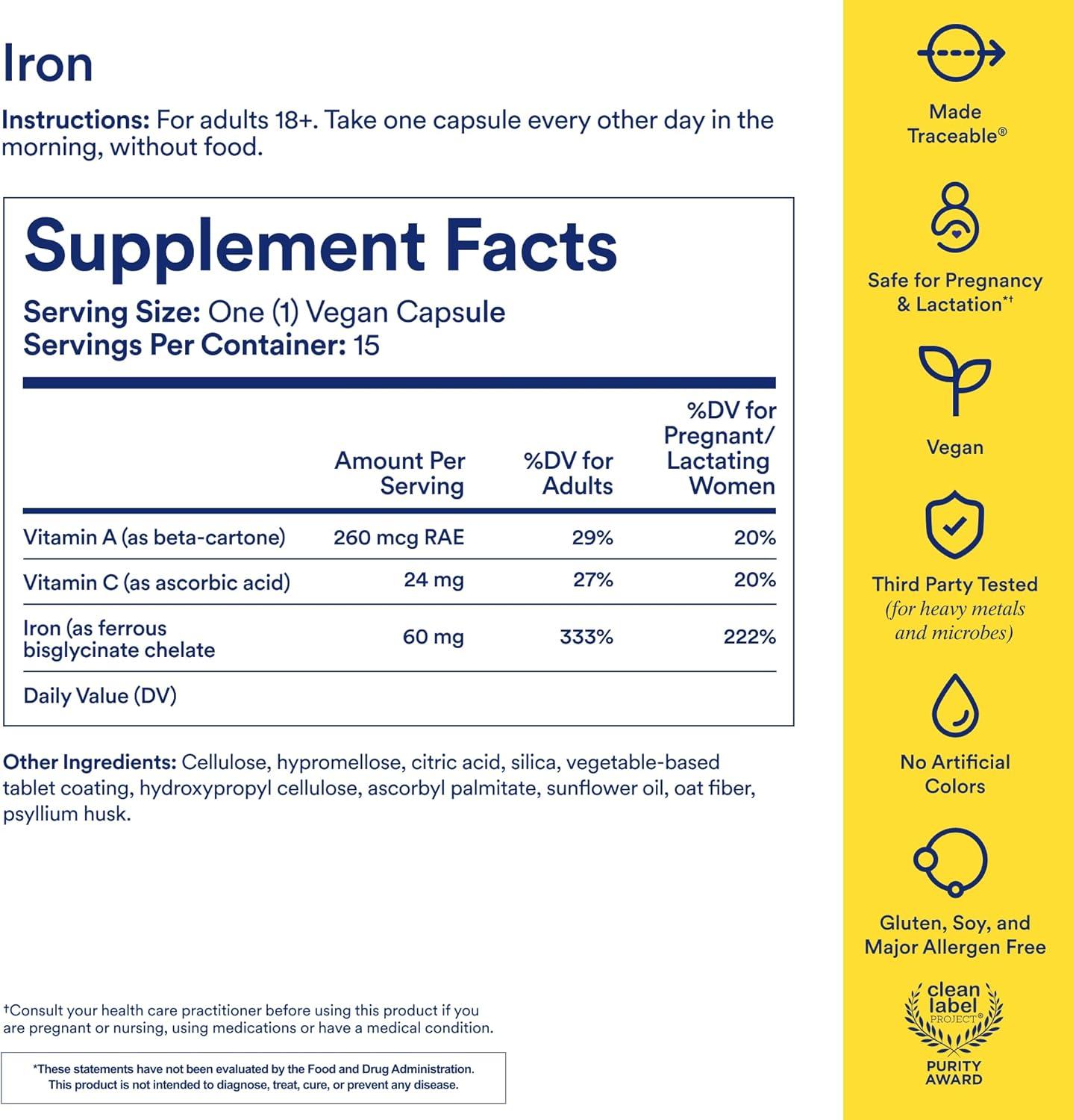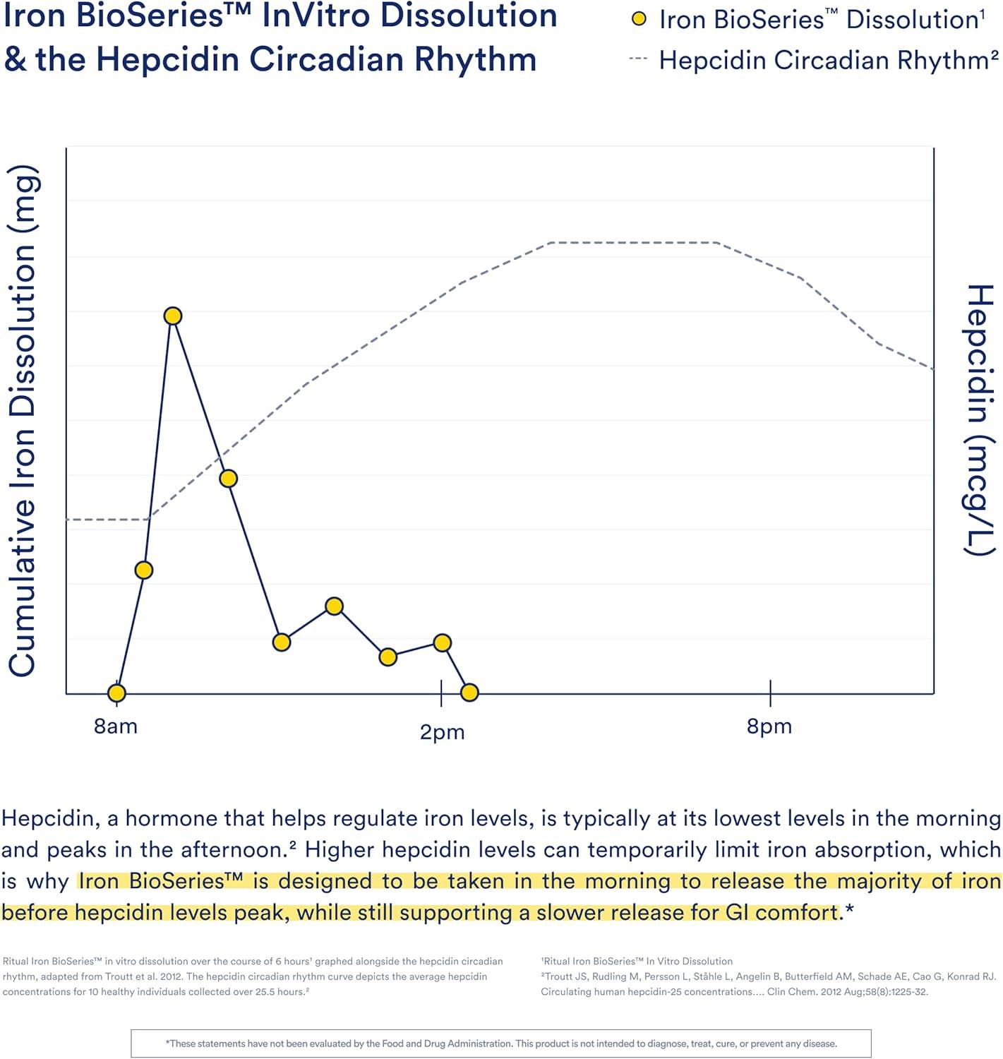Ritual Iron Supplement to Support Low Iron Levels 60 mg | 48-hour Dosing Routine with BioSeries™ Technology plus Vitamin A and C. Designed for Optimal Absorption and Minimal GI Discomfort* 15 Servings