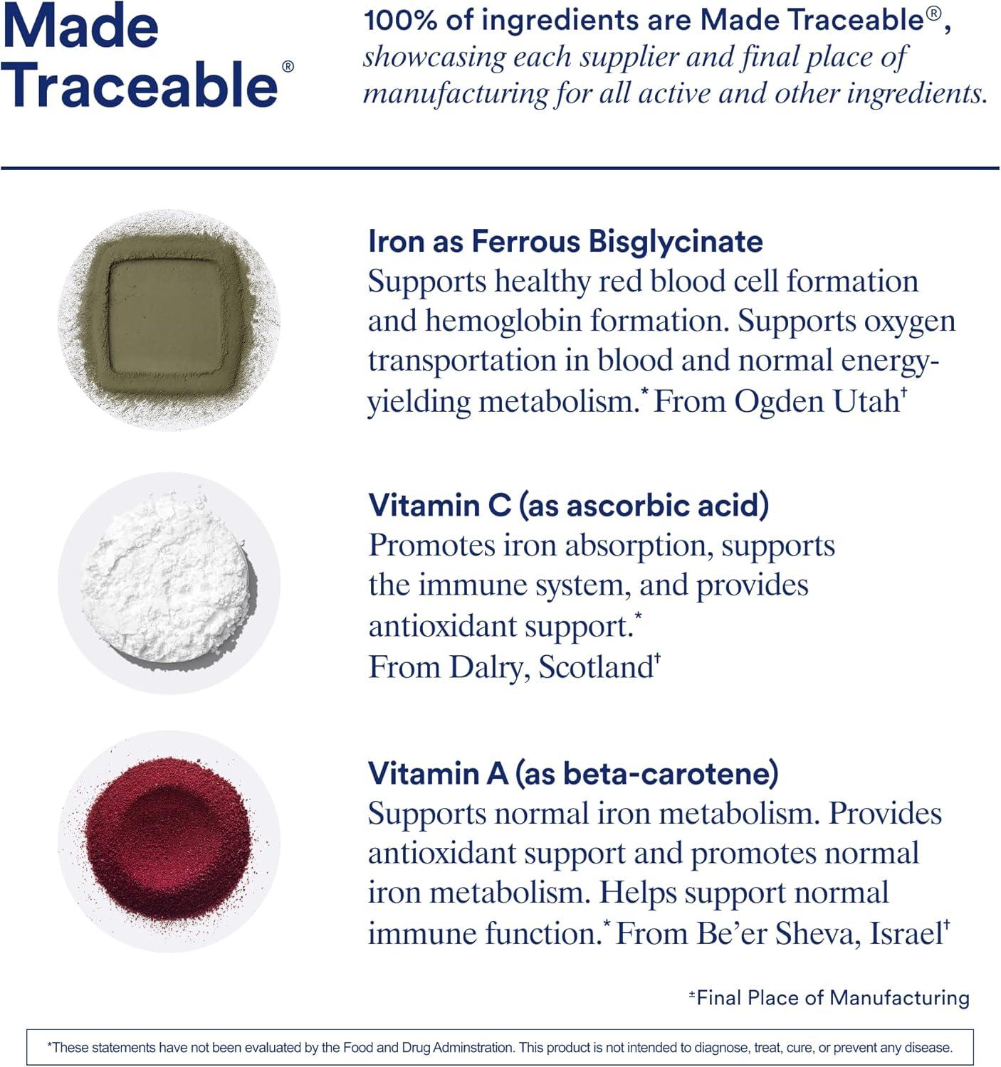 BLOOD-BOOSTING: Designed with bioavailable ferrous bisglycinate to support iron levels, which promotes red blood cell formation, oxygen transport, and energy metabolism.*
